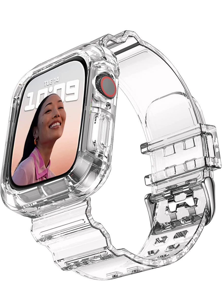 - Apple Watch クリア バンド 42mm 44mm 45mm 耐衝撃 TPU ベルト 保護カバー 一体型交換用 アップルウォッチバンド