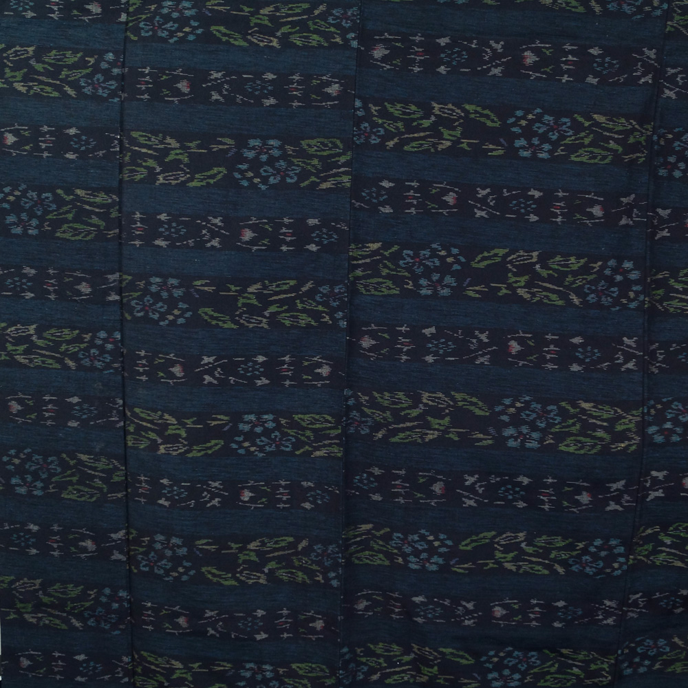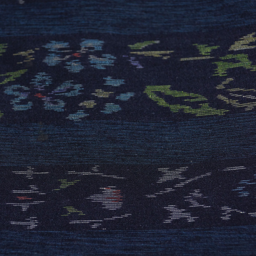 - 紬 横段に植物模様 裄長・Lサイズ 濃藍色系 中古 リサイクル着物 正絹 京都きもの天陽