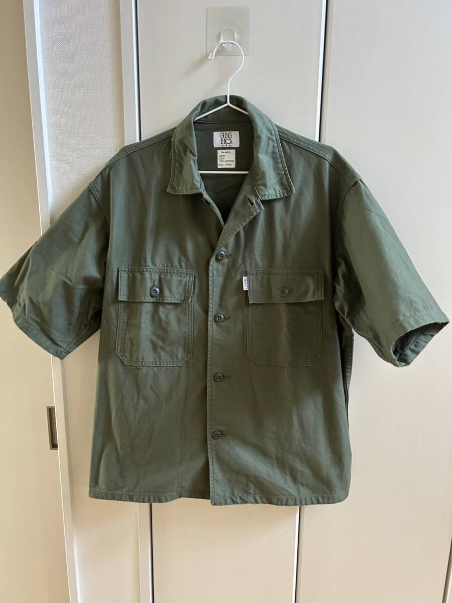 - GUNG HO ガンホー 半袖シャツ 軍物風 オリーブグリーン色 サイズL ベトナム製 綿100% オーバーサイズ U.S.ARMY風 使用感少ない