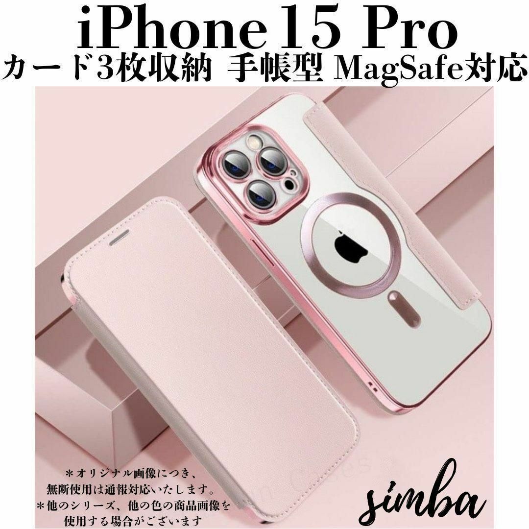 > iPhone 15 Pro ケース 手帳型 MagSafe対応 カード収納ピンク