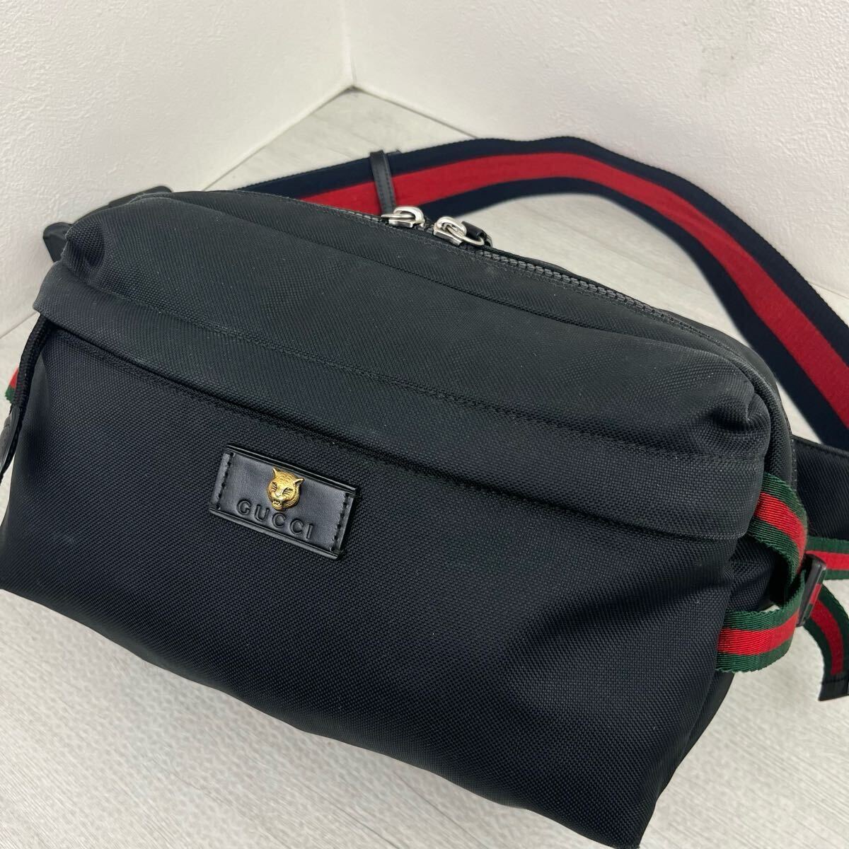 > 限定モデル 極美品 GUCCI グッチ ボディバッグ ショルダーバッグ シェリーライン タイガーモチーフ ナイロン ブラック メンズ 477085