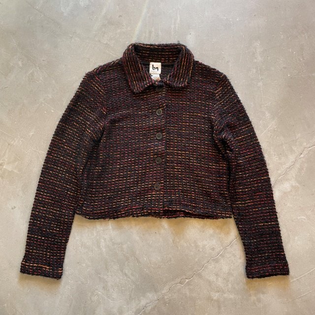 > 【Ladies】メキシコ製 BLANC NOIR アクリル×レーヨン ニットジャケット 黒ベース■ビンテージ レトロ アメリカ古着 レディース