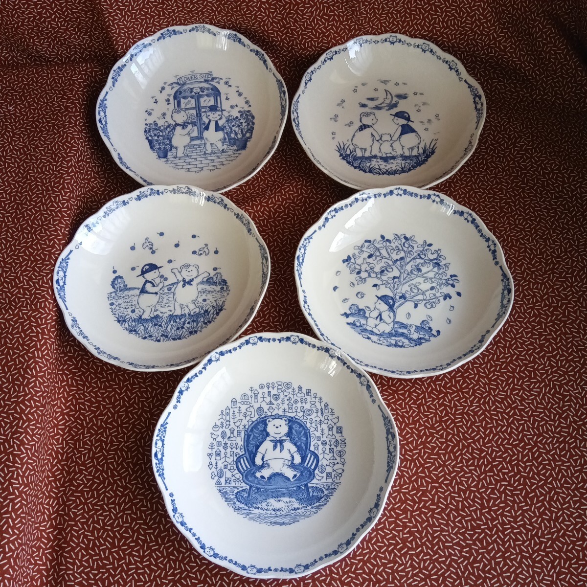 - 中古☆NIKKO TABLE WARE レトロ 食器 陶器 皿 ファンシー クマ 昭和 洋食器 スープ皿 大皿 飾り皿 まとめて セット 青
