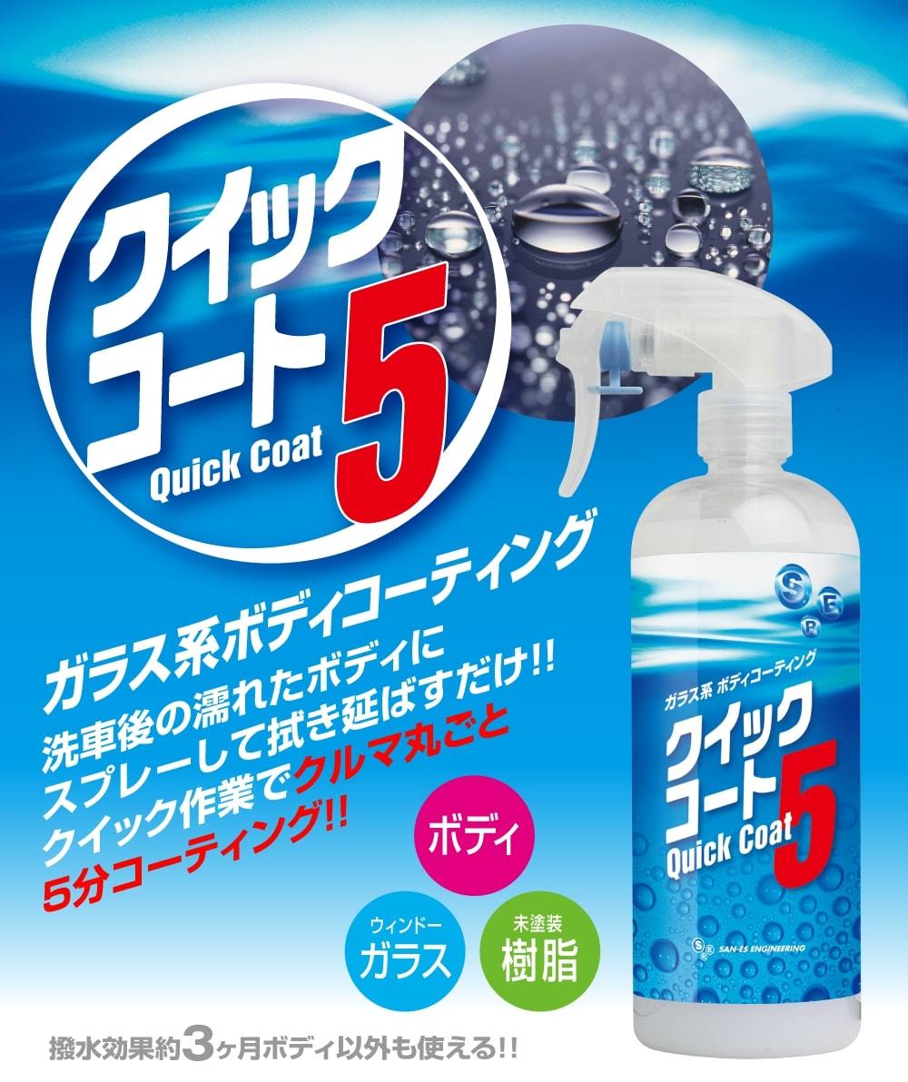 - 【送料無料】サンエスエンジニアリング クイックコート5 ガラス系撥水コート剤ボディコーティング ヘッドライト・ウィンドウガラスにも