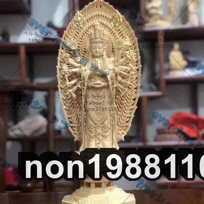- 高品質 総檜材 木彫仏像 仏教美術 精密細工 千手観音菩薩立像 高さ43cm