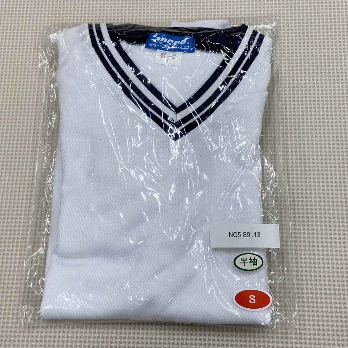 - Y039 新品【Sneed Sanwa】スクールスポーツウェア サイズ S /半袖/白x濃紺/V衿/男女兼用/ジャージ/体操服/小学校/中学校/高校/男女兼用