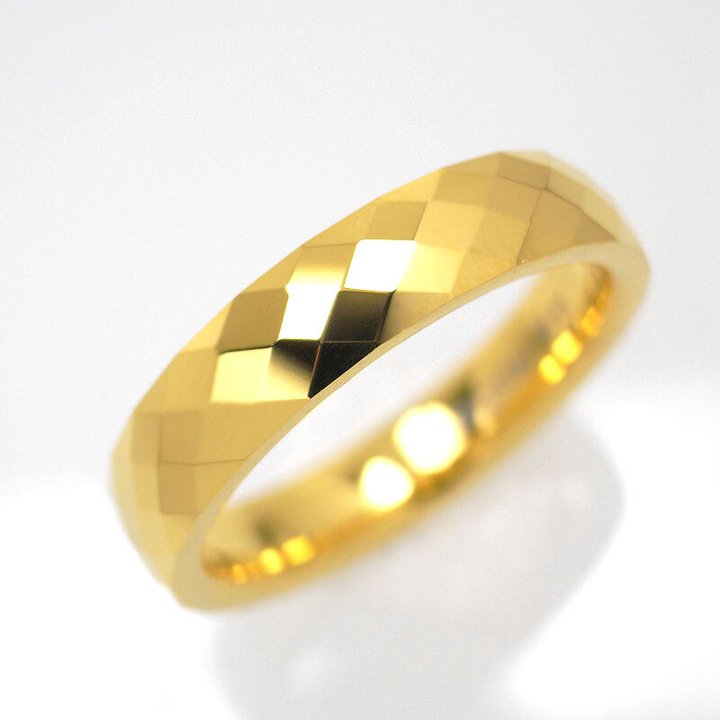 - ★お勧め★人気★手入れ不要★肌に優しい★金属アレルギー&温泉&海水浴ご使用OK★ゴールド甲丸タングステンリング★幅4mmダイヤ柄カット