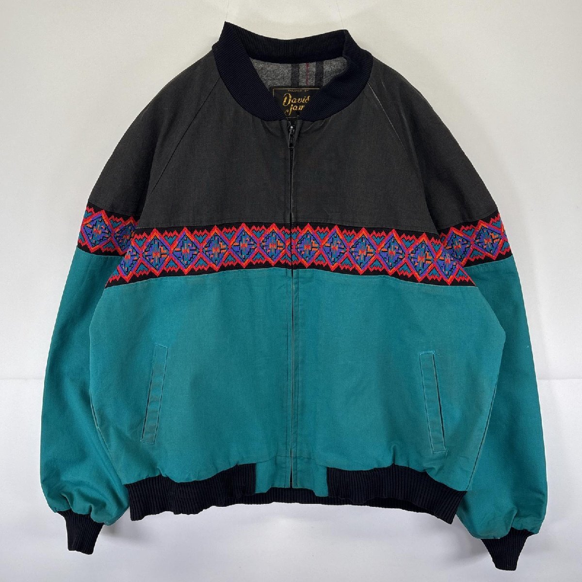 > 古着 Davis James USA製 ワークジャケット ネイティブ柄 ブルゾン 大きいサイズ ダック地 ブランケットライナー ブルー系 メンズ