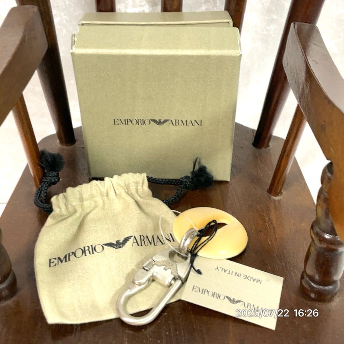 > EMPORIO ARMANI エンポリオアルマーニ GAロゴ サークル調 シルバー×クリームカラー キーホルダー キーリング アクセサリー 小物 箱付き