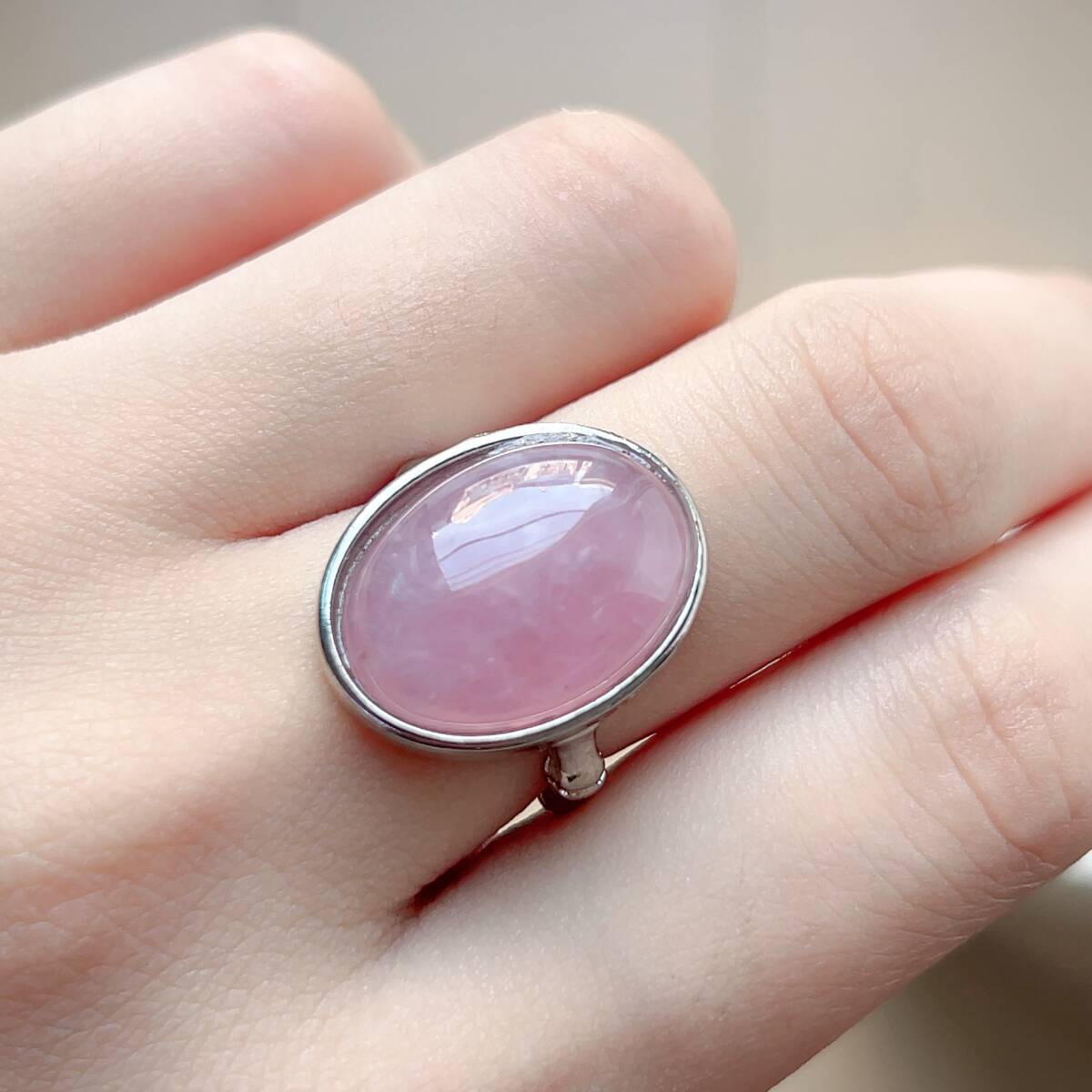 - ◇ローズクォーツ(紅水晶)指輪◇リング◇フリーサイズ◇天然石◇パワーストーン◇巾着袋付き◇プレゼントにも 039R7284