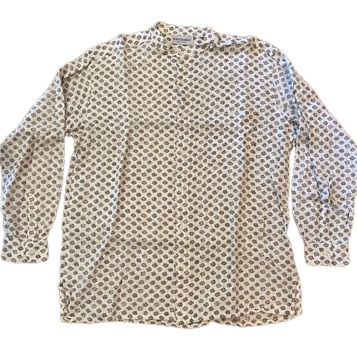 - マリメッコ 90s ヴィンテージ リネン シャツ 麻 mari mekko ビンテージ 総柄 バンドカラー 長袖 ノーカラー 花柄 ユーロ古着 イングランド