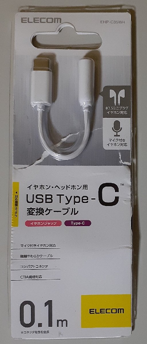 - 6346 EHP-C35WH イヤホン・ヘッドホン用 USB Type-C変換ケーブル 0.1m ELECOM イヤホンジャック-TypeC