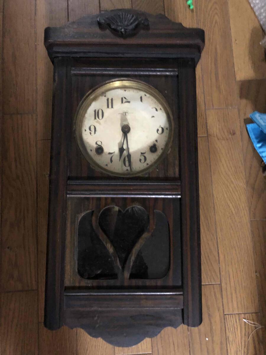 - アンティーク ボンボン時計 掛時計 柱時計 レトロ 古時計 インテリアやディスプレイや撮影用に!修理用 部品取りにも No13