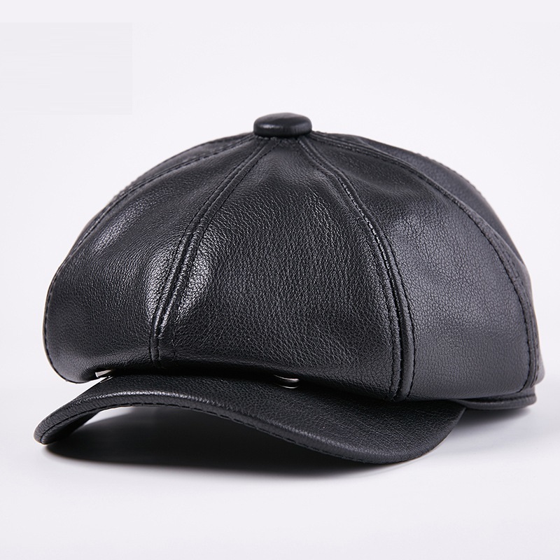 - 人気品 男女兼用 秋冬帽子本革 八角帽子 メンズ レディース リアルレザー キャップ ベレー帽 キャスケット ハンチング