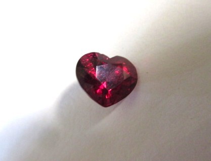赤いテリがキラキラしているハート形ロードライトガーネットです。インクルージョンがありますが、透明感とテリがあります。非加熱。