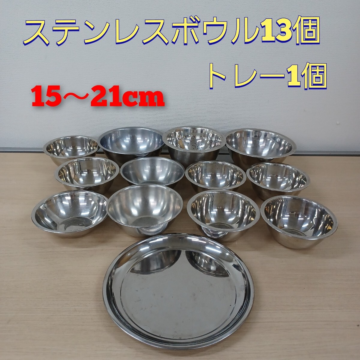 > 石) ステンレスボウル 13個 穴あきボウル 15~21cm トレー1個 お盆 業務用 調理器具 ボール ボウル 厨房 製菓 仕込み 飲食店 250729 D1-4