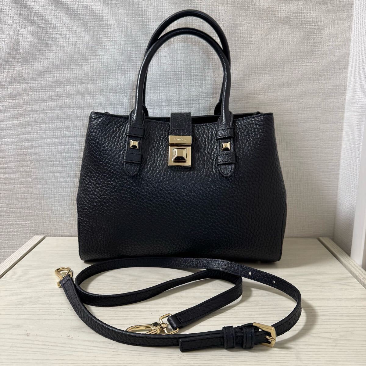 > 【大幅値下げ】【新品同様】FURLA フルラ 2WAY トートバッグ ブラック 黒 レザー ショルダーバッグ ハンドバッグ