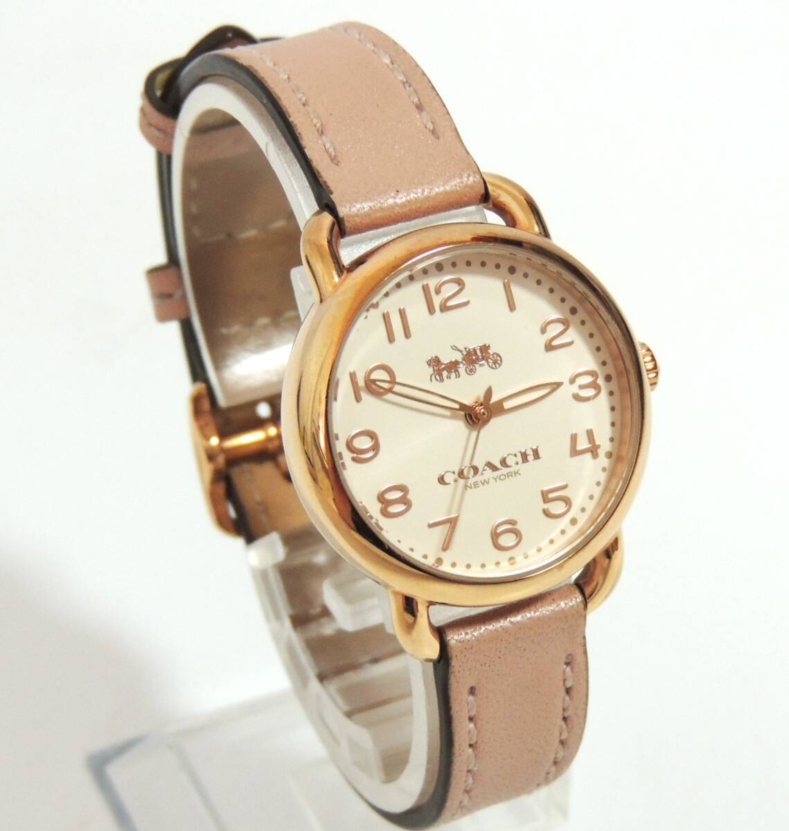 - □ COACH コーチ CA.97.7.34.1032 クォーツ 腕時計 ゴールド ピンク アイボリー文字盤 レザーベルト 動作品 中古 保管品 ③