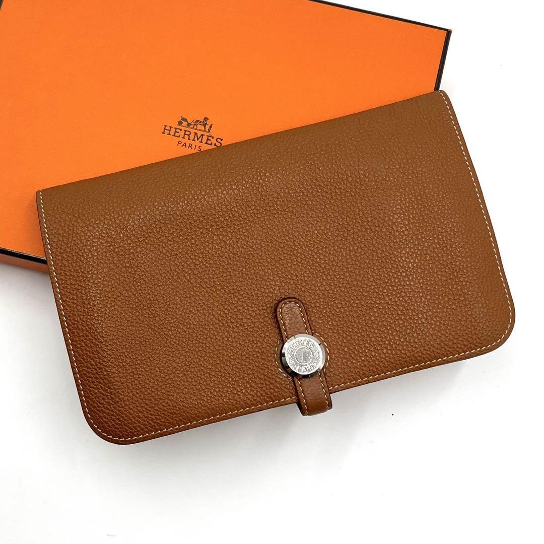 - 極美品 HERMES エルメス ドゴン GM トゴ ブラウン 長財布 シルバー