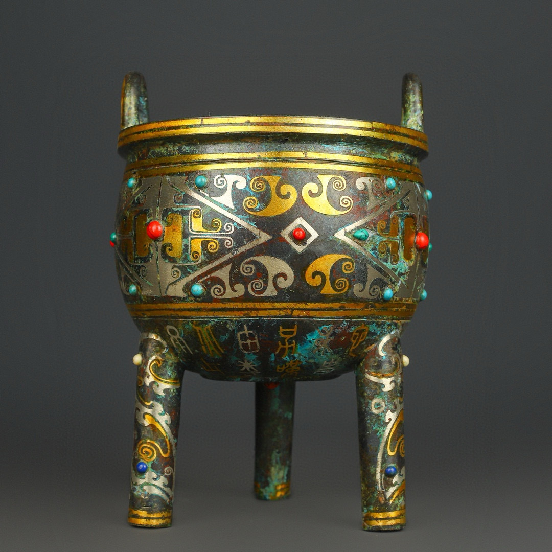 > 「早期收集 漢時代 古銅錯金 青銅器 青銅錯金 宝石嵌 寶石 圓鼎 三足炉」時代物 古董品 骨董 旧家蔵出し 唐物 中国古玩 古美術品 ヤフオク