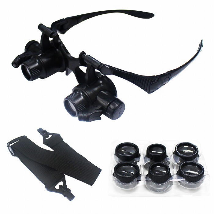 - メガネ ルーペ LED ライト付 拡大鏡 10倍 15倍 20倍 25倍 眼鏡式 めがね ヘッドルーペ プラモデル 鑑定 精密 製作 工具