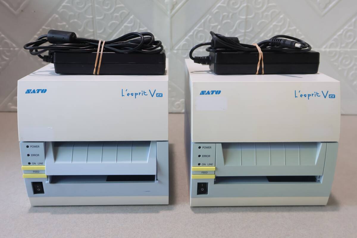 - G9118 P 2台セット【動作品】SATO L'esprit VeX バーコードプリンター レスプリ T408v-exSTD DC24V 65W LAN/USB 対応 電源アダプタ付属