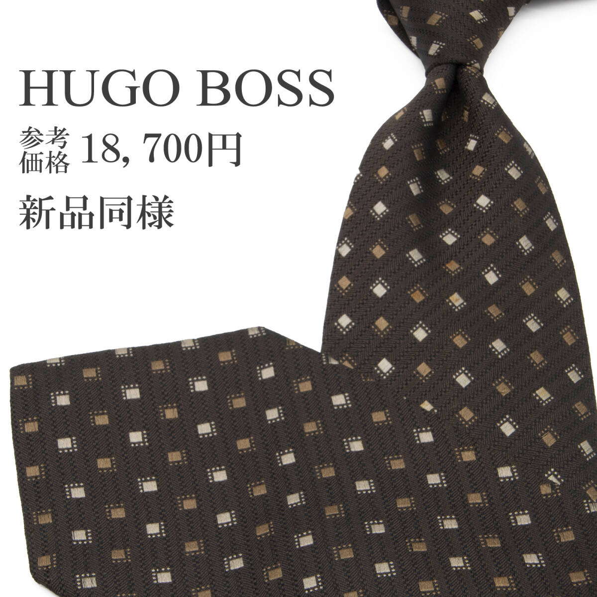 - 送料無料 ヒューゴボス ネクタイ ジャガードタイ 新品同様 シルク 茶色 ブラウン ベージュ ビジネス 四角 ブランド イタリア製 綺麗 P217