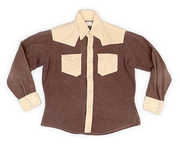 > 70's ビンテージ JC Penney ペニー JEAN SHIRT コーデュロイ ウエスタンシャツ 綿100% 切替 ブラウン ベージュ L [i-0018]