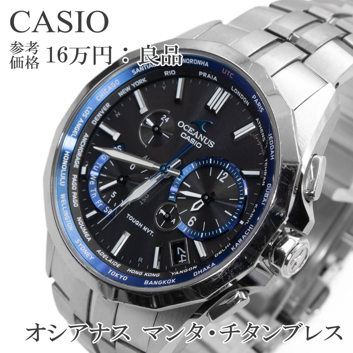 - 送料無料 カシオ 腕時計 ソーラー電波 メンズ オシアナス マンタ OCW-S2400-1AJF 黒 ブラック 青 多機能 ロゴ マーク チタンブレス X284