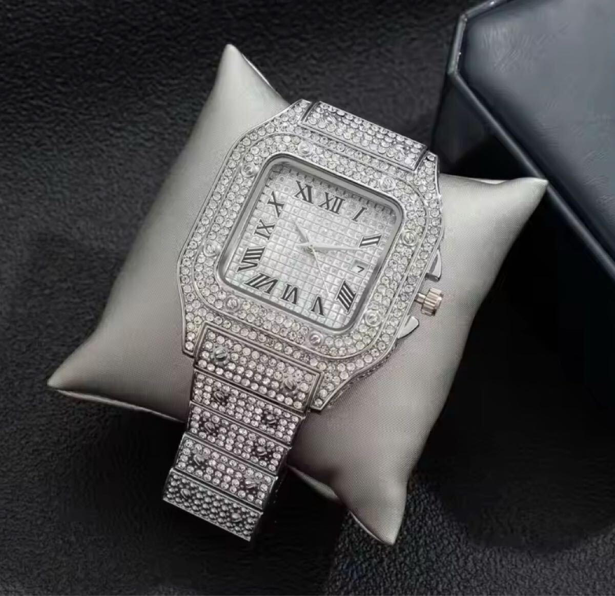 - 【LUXURY】腕時計 シルバー 銀 アナログ 高級 ブランド スクエア ダイヤモンド風 ラインストーン 高見え ビジネス