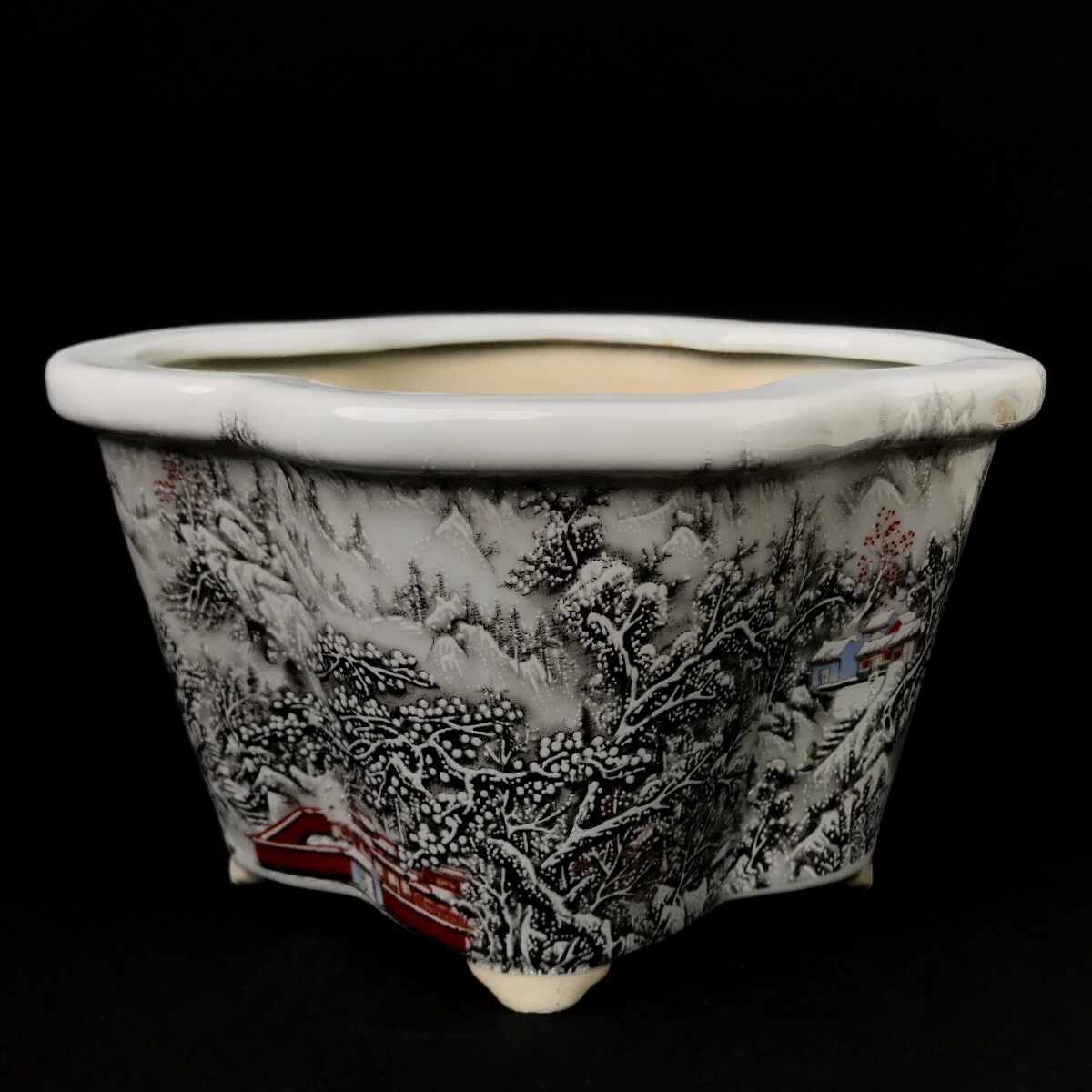 - 中国古美術 植木鉢 雪景図蘭鉢 盆栽鉢 磁鉢 山野草鉢 多肉植物 植木鉢 大品盆栽鉢 陶器鉢 置物超人気 多肉植物