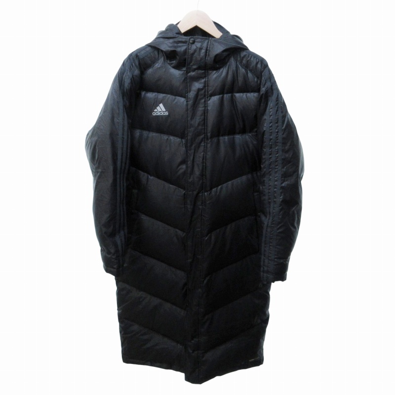 > アディダス adidas ダウンコート ベンチコート ジップアップ ロゴ 刺繍 スリーストライプ ロング丈 M 黒 ブラック 0725 メンズ