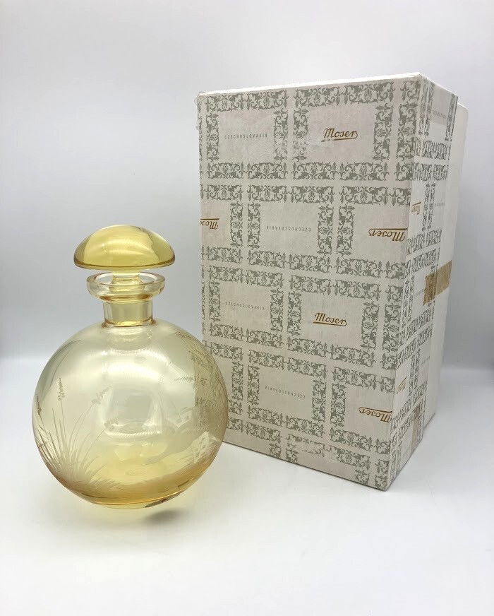 > 【本物保証】Moser(モーゼル) デキャンタ ガラス 高級クリスタルガラス 鳥草文細密彫 名品 チェコスロバキア R7-0133