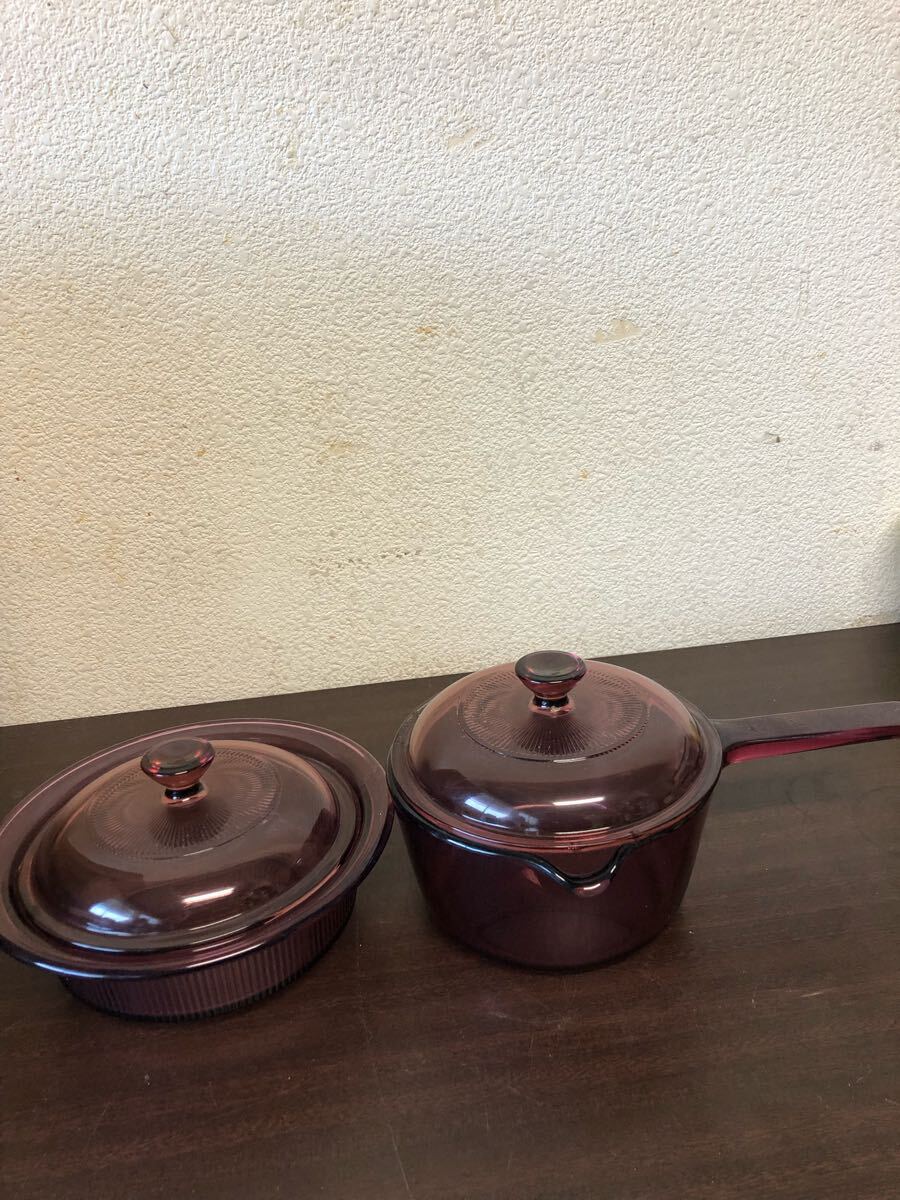 - VISION ビジョン USA 片手鍋 1L と 750ml 鍋 耐熱ガラス 2点セット パイロセラム 未使用 保管品 クランベリー 良品