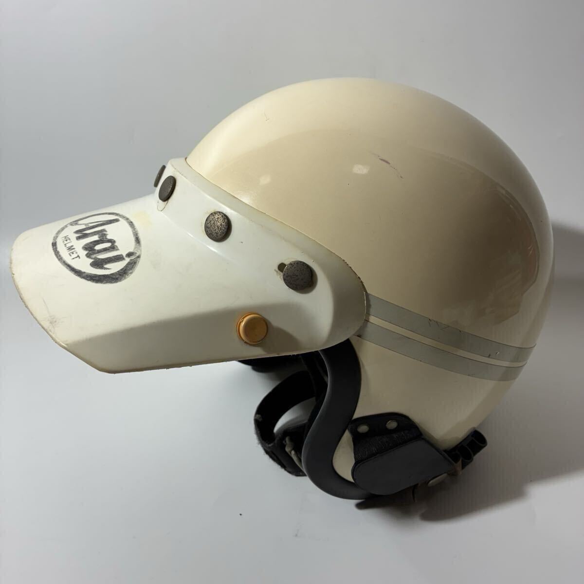 > KT123【Arai ジェットヘルメット アライ 新井広武 55-60cm】MADE IN JAPAN/バイク/ポリスヘルメット/立花/革巻き/SHOEI/当時物/ビンテージ/