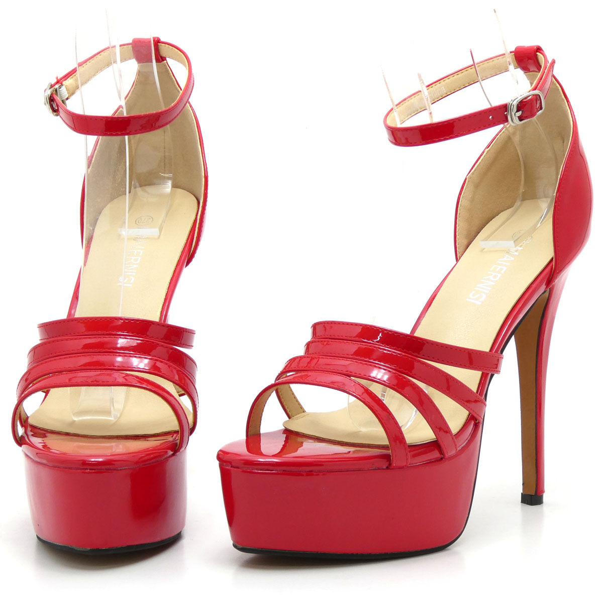 - 新品 大きいサイズ サンダル レッド 27cm 131190-44 エナメル調 アンクルストラップ 前厚底ストーム ハイヒール