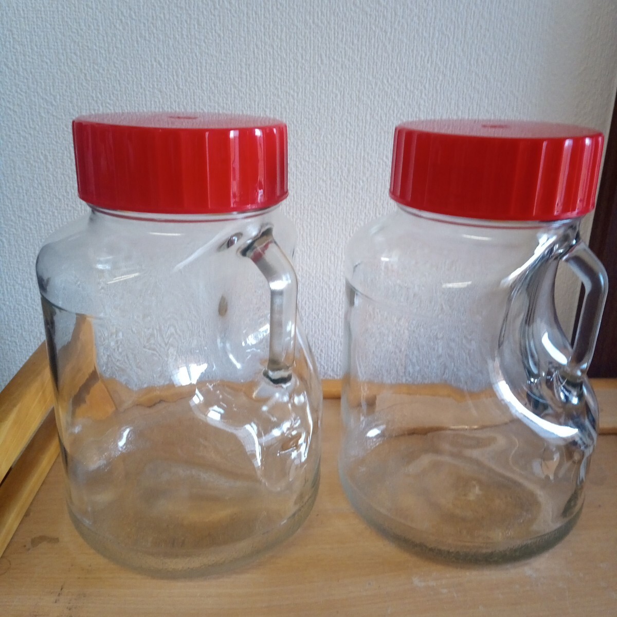 - 果実酒 梅干用 取手付ガラスビン2ビン