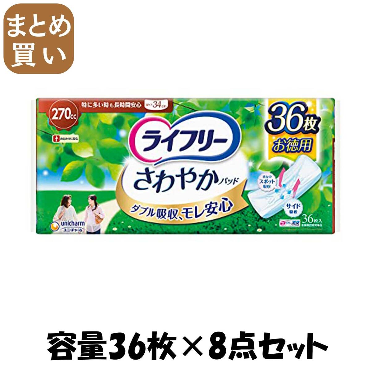- 【まとめ買い】LFさわやかパッド特に多い時も長時間安心用36枚 容量36マイ×8点セットユニ・チャーム(ユニチャーム) 生理用品