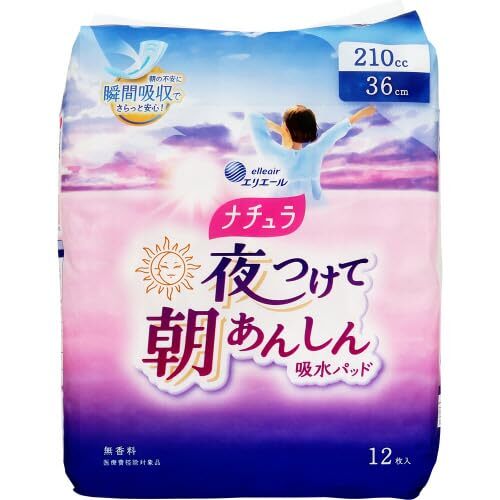 - ナチュラ夜つけて朝あんしん吸水パッド36cm210cc12枚 容量12マイ 大王製紙 生理用品