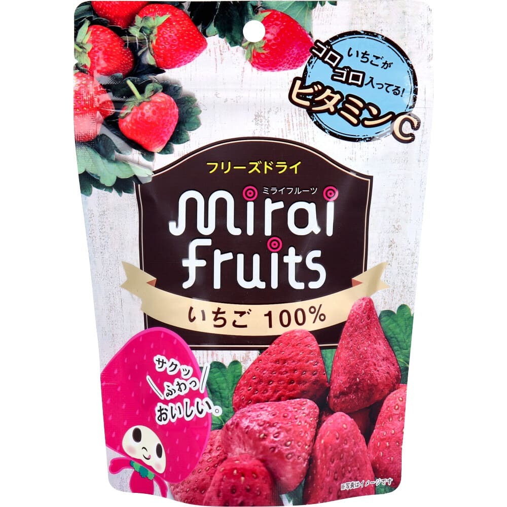 ▼▼▼▼▼▼注意事項▼▼▼▼▼▼・送料込み(送料700円が商品価格に含まれています) 一部地域では追加送料あり。・お取り寄せ商品です。弊社にて手配後、メーカー・卸業者からの直送になります。・まれにメーカー欠品、出荷遅延等が発生致します。問題発生時は別途メールにてご連絡致します。・配送方法の指定、日時指定、置き配、ギフト対応、他商品との同梱配送などは対応できません。・まとめ買いや複数購入の場合は通常より発送に時間が掛かる場合がございます・複数個口の場合、2階以上への搬入ができない場合があります。(その場合は1階での受け渡しとなります)・大型連休、お盆、年末年始などは発送をお休みさせていただく場合がございます・メーカー都合により、パッケージは予告なく変更される場合がございます・梱包用のダンボールはリサイクル品を使用させていただきます。・注文に関するご連絡(注文確定通知・発送通知など)はメールでご案内させていただきます※商品ページの内容について、少しでもご不明な点などがございましたら購入前に一度ご連絡ください▲▲▲▲▲▲注意事項▲▲▲▲▲▲〇商品説明大地と太陽の恵みをギュッ!「いちご」を100%使用 !大地と太陽の恵みをギュッ。果実の美味しさをいつでも手軽に。いちごがゴロゴロ入ってる!●ミライフルーツは果実 100%で作ったフリーズドライフルーツです。●着色料や香料を一切加えず、果実そのものの美味しさを閉じ込めました。●ドライなのにフレッシュ。優しい口当たりで、 お子様からお年寄りまで安心してお召し上がり頂けます。●驚きの美味しさと新食感をお楽しみください。●着色料・香料・甘味料・油・保存料 不使用。【名称】乾燥果実商品名:ミライフルーツ いちご【原材料】いちご【栄養成分(1袋8gあたり)】エネルギー・・・30kcaLたんぱく質・・・0.5g脂質・・・0.04g炭水化物・・・7g食塩相当量・・・0gビタミンC・・・38mg【月齢】9ヵ月頃から【保存方法】・直射日光・高温多湿の場所を避けてください。【注意】・本品製造工場では、えび、かに、くるみ、小麦、そば、卵、乳、落花生を含む製品を製造しています。・果物をそのまま乾燥させているため、色・形・味に個体差があります。・表面に白い粉が付着していることがありますが、果物の糖分ですので安心してお召し上がり下さい。・果物の特性及び製造工程上、まれに表面に褐色や固い部分などが生じる場合がありますが、品質に問題はありません。・水分を吸収しやすい食品ですので、開封後はお早めにお召し上がりください。・初めて赤ちゃんに食べさせるときはアレルギーや消化不良などに気をつけながら少しずつ始めましょう。・繊維部分など、うまく飲み込めない時がありますので、様子を見ながら小さくしたり、水分を与えたりして必ず食べ終わるまで保護者が見守ってください。・横になっているときやおぶっているときなど、のどが詰まりやすい姿勢では食べないでください。・アレルギーについてご確認の上、お召し上がりください。〇商品仕様個装サイズ:130X185X50mm個装重量:約18g内容量:8g原産国:韓国【発売元:株式会社ビタットジャパン】(出典:ビタットジャパン)