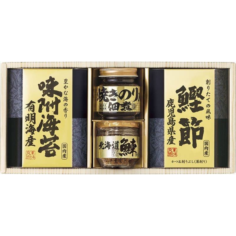 ▼▼▼▼▼▼注意事項▼▼▼▼▼▼・送料込み(送料800円が商品価格に含まれています) 一部地域では追加送料あり。・お取り寄せ商品です。弊社にて手配後、メーカー・卸業者からの直送になります。・まれにメーカー欠品、出荷遅延等が発生致します。問題発生時は別途メールにてご連絡致します。・配送方法の指定、日時指定、置き配、ギフト対応、他商品との同梱配送などは対応できません。・まとめ買いや複数購入の場合は通常より発送に時間が掛かる場合がございます・複数個口の場合、2階以上への搬入ができない場合があります。(その場合は1階での受け渡しとなります)・大型連休、お盆、年末年始などは発送をお休みさせていただく場合がございます・メーカー都合により、パッケージは予告なく変更される場合がございます・梱包用のダンボールはリサイクル品を使用させていただきます。・注文に関するご連絡(注文確定通知・発送通知など)はメールでご案内させていただきます※商品ページの内容について、少しでもご不明な点などがございましたら購入前に一度ご連絡ください▲▲▲▲▲▲注意事項▲▲▲▲▲▲〇商品説明小豆島で製造された焼き海苔入りの佃煮、鹿児島県産鰹節など選りすぐりの逸品を詰合せた和風ギフトです。〇商品仕様【パッケージサイズ】350×70×165mm【内容】北海道産鰊フレーク:50g・焼きのり佃煮:85g・鹿児島県産鰹節:(2g×3)・有明海産味附海苔:8切10枚入×各1【アレルゲン】小麦・えび【生産国】日本【パッケージ形態】化粧箱入【保存方法】常温【賞味期限】製造日より約540日(出典:エルスト)
