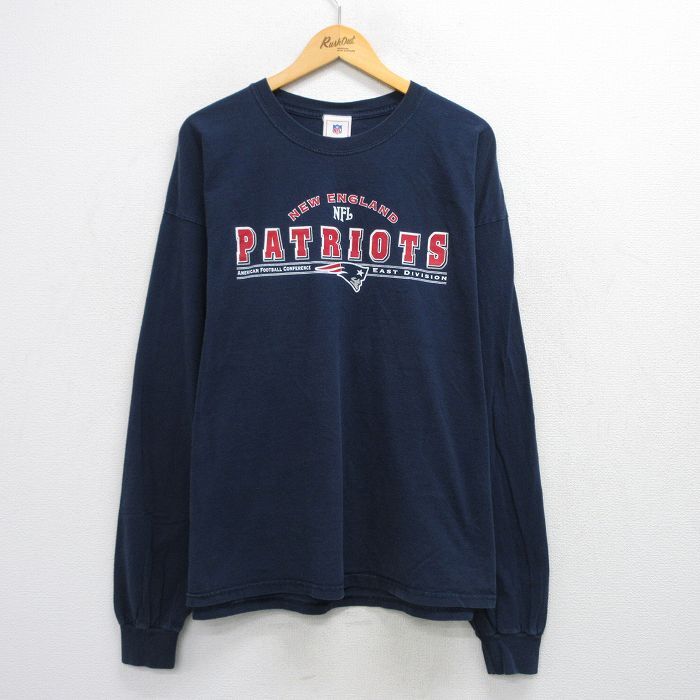 > XL/古着 長袖 ビンテージ Tシャツ メンズ 00s NFL ニューイングランドペイトリオッツ 大きいサイズ コットン クルーネック 紺 ネイビー ア