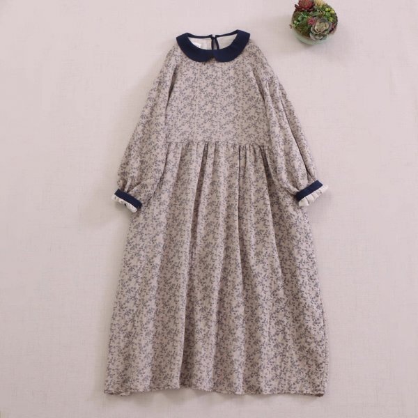 > lb 0708 ワンピースフリーサイズ チュニック トップス ナチュラル 綿100% 大人可愛 プリント花柄 切り替え 2