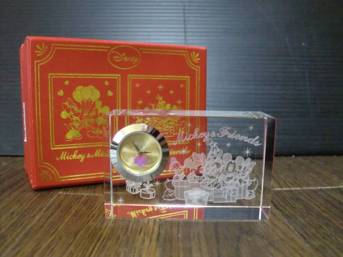 - ♪♪【7H2⑤ar】ミッキー&フレンズ プレミアムクリスタルクロック ガラス置時計 インテリア ディズニー オブジェ ガラス 箱付き♪♪