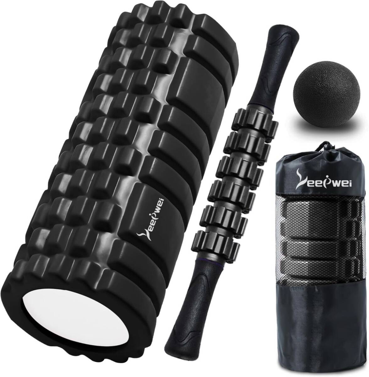 - 送料無料!☆新品★LEEPWEI フォームローラー 筋膜リリース ヨガポール マッサージボール 初心者 家庭用 4点セット 収納袋付き ブラック