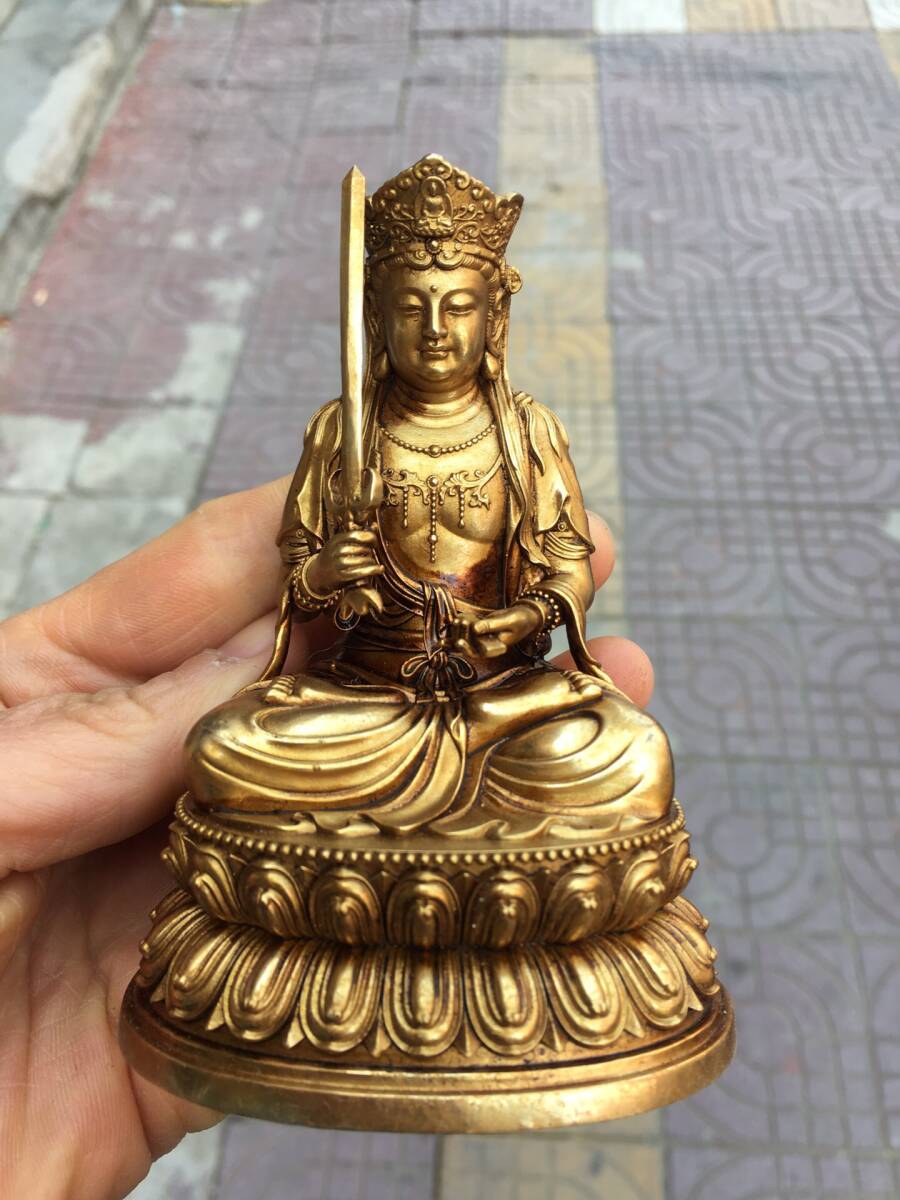 - 『館蔵珍品 銅製 塗金 文殊菩薩像 仏像 宗教 仏教古美術 供養品』稀少珍蔵品 古賞物 貴重物品 収蔵品 中国古美術 時代物 古董品
