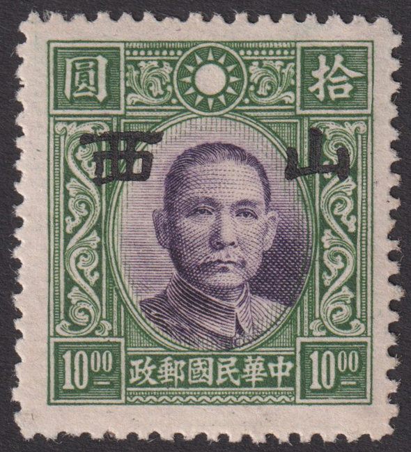 - 中国占領地切手 JPS:4C65 山西 省名加刷 大字 大東版孫文 すかしなし 10円 未使用 2101