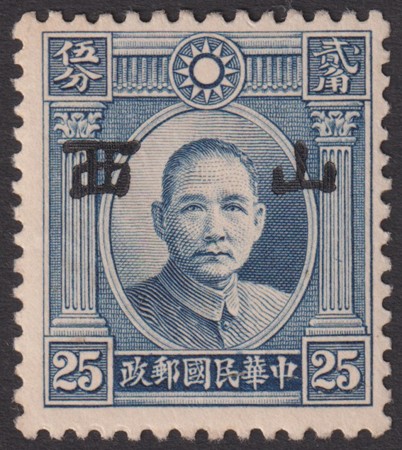 - 中国占領地切手 JPS:4C6 山西 省名加刷 小字 ロンドン版孫文 25分 未使用 2098