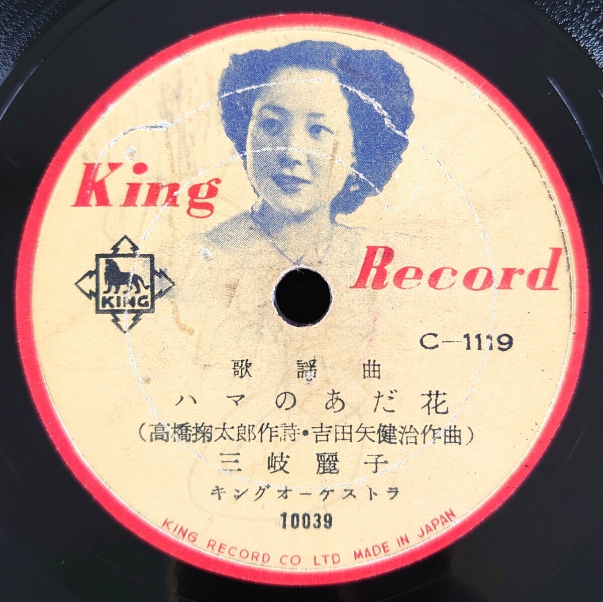 - 【SP盤レコード/縁欠ヒビ】KING RECORD C-1119 歌謡曲/ハマのあだ花 三岐麗子/ギターながし 春日八郎
