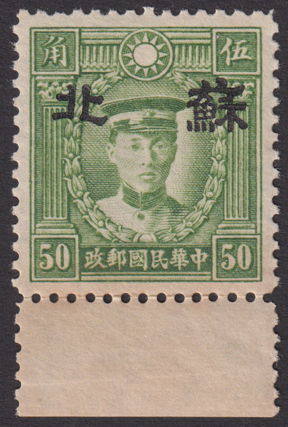 - 中国占領地切手 JPS:5C86 蘇北 非正式発行 省名加刷 大字 香港版烈士 すかしなし 50分 未使用 2102